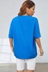 Unisex Oversize Bisiklet Yaka Hysterigal Baskılı Basic T-Shirt - SAKS MAVİSİ - Image 1