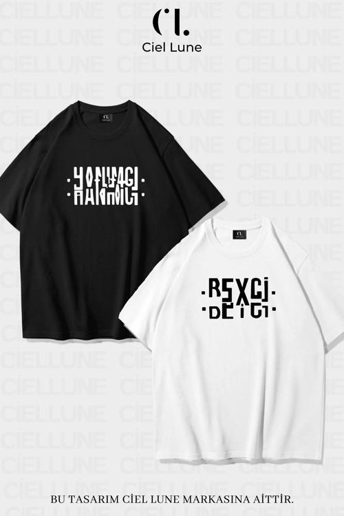 Nevermind Unisex Kadın Erkek Hanımcı Beyci Baskılı Sevgili Çift Kombini Tasarım Oversize T-shirt 2'li Set