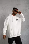 Üç İplik Kapüşonlu Ön ve Arka Baskılı SweatShirt hoodie - Beyaz - Image 1