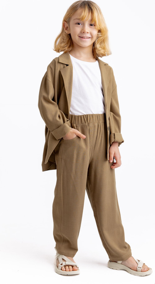 Oliven The Kid Unisex Klasik Keten Pantolon Caramel