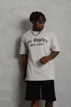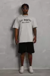 Unisex Oversize Baskılı Bisiklet Yaka T-Shirt - Gri