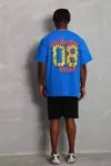 Unisex Oversize Baskılı Bisiklet Yaka T-Shirt - Mavi