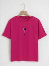 Soft Unisex Oversize Bisiklet Yaka Balloon Astronaut Baskılı Basic T-Shirt - FUŞYA