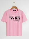 Soft Unisex Oversize Bisiklet Yaka You Are Baskılı Basic T-Shirt - PEMBE