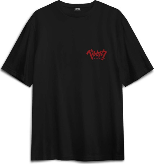 - Unisex Pamuk Siyah Berserk Manga Anime Guts Kılıç Ön Sırt Baskılı Oversize Tişört - OVR12S-4343