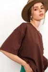 Lela Pamuklu Kolları Fırfırlı Slim Fit Bisiklet Yaka Bayan T Shirt 5864500 TAŞ - Image 1