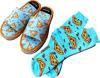 Unisex pizza desenli soket çorap ve önü açık pizza desen terlik setidir.