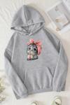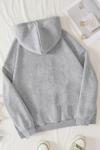 Kadın Baskılı Kapüşonlu Sweatshirt - Gri - Image 1