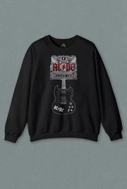 So Cool Unisex Siyah Sweatshirt Ac Dc Black Ice Guitar Gitar Rock Music Baskılı Sweat