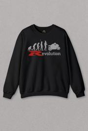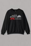Unisex Siyah Sweatshirt Evolution Human Evrim Motosiklet Baskılı Sweat