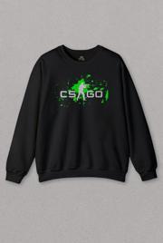 Unisex Siyah Sweatshirt Gamer Oyun Cs Go Csgo Counter Strike Global Offensive Baskılı Sweat