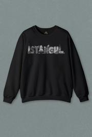 Unisex Siyah Sweatshirt Tarihi İstanbul Silüet Tasarım Osmanlı Baskılı Sweat