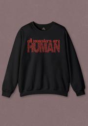 Unisex Sweatshirt All Monsters Are Human Kurukafa Canavar Baskılı Sweat