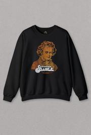 Mzp Kartan Unisex Bisiklet Yaka Ön Ve Arka Baskılı SweatShirt - Siyah