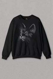 Unisex Sweatshirt Kedi Silüeti Black Cat Çizim Baskılı Sweat