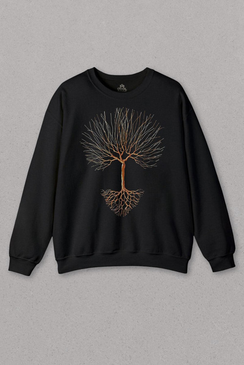 Unisex Sweatshirt Nature Hayat Ağacı Kuru Ağaç Kökü Baskılı Sweat