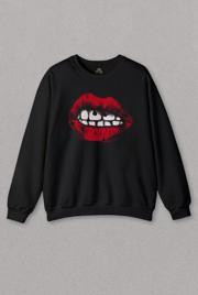 So Cool Unisex Sweatshirt Seksi Dudaklar Sexy Piercing Kadın Ağzı Baskılı Sweat