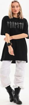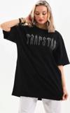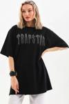 Unisex Taş Desenli Oversize T-Shirt - Siyah