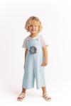 Oliven The Kid Unisex Tüğ Nakışlı Keten Salopet Mavi