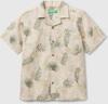 Erkek Çocuk Desenli Keten Karışımlı Tamamı Desenli Tek Cep Detaylı Kısa Kollu Gömlek