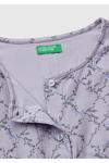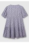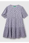 Kız Çocuk Mor Viskozlu Desenli Önü Düğmeli Pileli Katlı Kısa Kollu Elbise