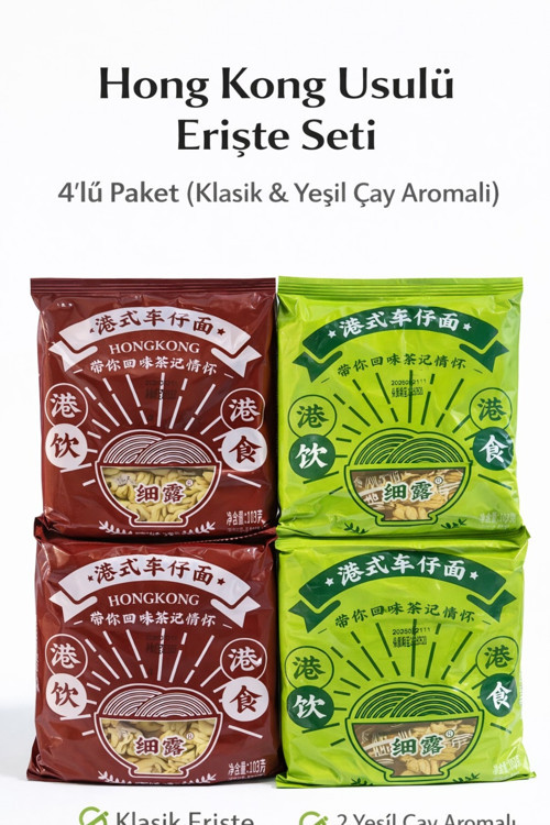 United Foods Hong Kong Usulü Erişte Seti – 4’Lü Paket (Klasik & Yeşil Çay Aromalı)