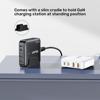 Ayakta durmasını sağlamak için tasarlanmış ince bir yuva ile birlikte gelir. Bu düşünceli tasarım, yerden tasarruf sağlamanın yanı sıra erişilebilirliği de artırarak cihazlarınızı kolayca bağlayıp çıkarmanızı sağlar. Şarj kurulumunuzu düzenli ve şık tutarken, cihazlarınızın her zaman elinizin altında olmasını sağlayın!