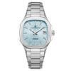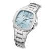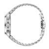 Metalik renkli çelik kordon, saate modern ve sofistike bir görünüm kazandırır.