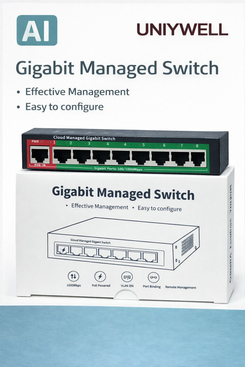 UNIYWELL GS108 yönetilebilir switch, küçük ve orta ölçekli işletmeler için idealdir. Ağ yönetimi gereksinimlerini karşılamak üzere tasarlanmış olup, ofislerde ve kurumsal ortamlarda güvenilir bir ağ çözümü sunar. Gigabit Ethernet bağlantı hızı, yüksek bant genişliği gerektiren uygulamalar için mükemmeldir.