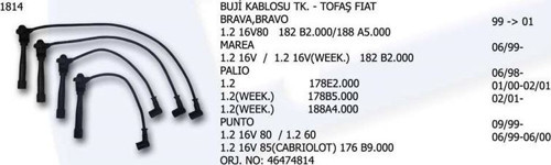 Ünüvar Buji Kablosu Tk. Fıat 1.2 1.6 16V Brava Bravo 1/2 Marea Palıo Punto 1/2 (1 Tk )