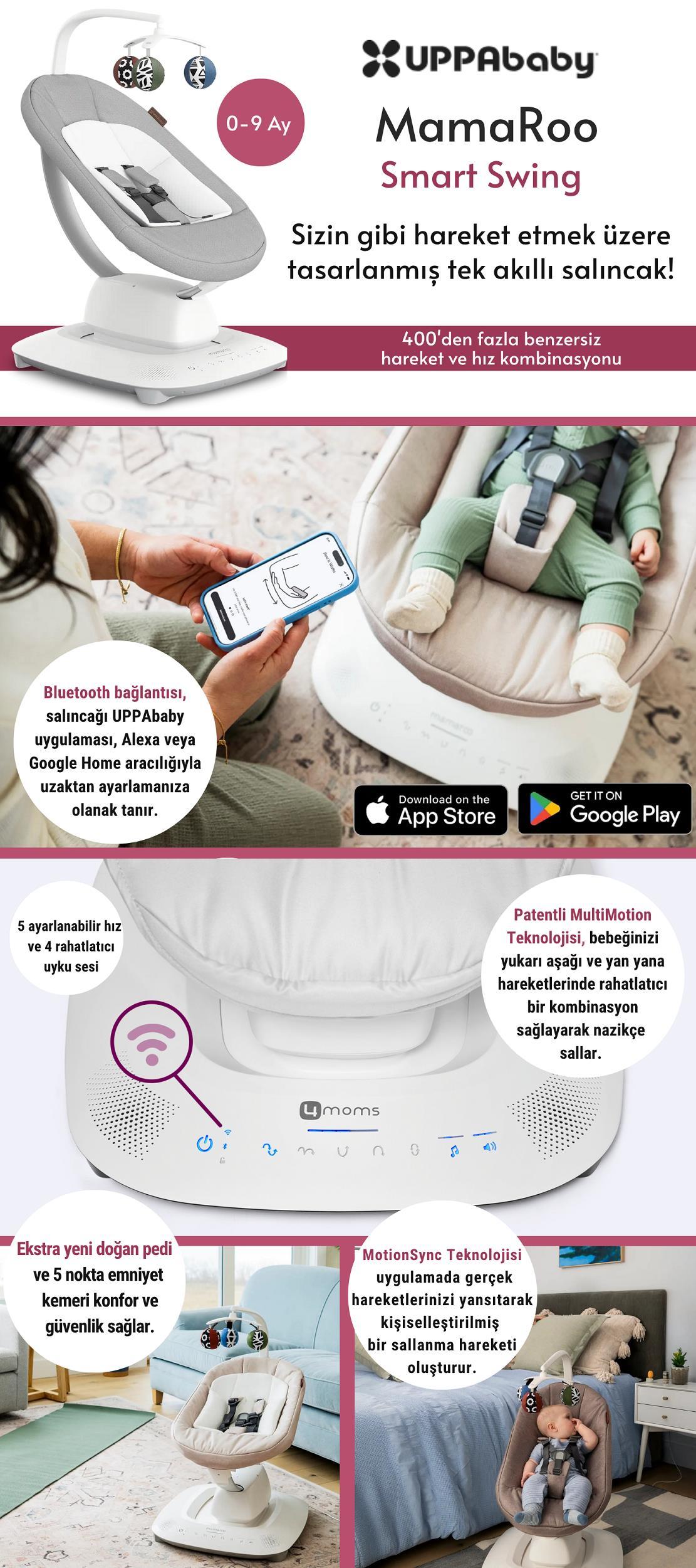 Mamaroo Akıllı Salıncak, annelerin doğal hareketlerinizi taklit ederek, siz mola verirken bebeğinizin güvenli ve konforlu dinlenmesini sağlayacak şekilde tasarlanmıştır. Beş rahatlatıcı hareket, özelleştirilebilir hızlar ve akıllı ev modu özellikleri ile bebeğinizin ihtiyaçlarına uyum sağlarken, size de kendi ihtiyaçlarınıza odaklanma özgürlüğü sunar.