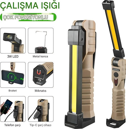Ural Teknik Usb Şarj Edilebilir El Feneri Su Geçirmez Tamir Cob Fenerleri Kamp Lambası Acil Durum Lambası