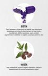 - BIOTIN: Saç kalitesini artırır, saçın sağlıklı uzamasını destekler. Saçın güneş ışığı, toz, kir gibi doğal etkilere ve boya fön gibi işlemlerden kaynaklanan zararlara dayanıklılığını artırır.