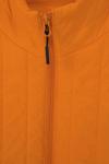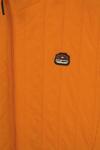 Turuncu hafif dik yakalı, sentetik dolgulu, tam fermuarlı vücut ısıtıcısı.