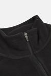 Karyoka dikiş detaylı, siyah polar kumaştan tam fermuarlı vücut ısıtıcısı.