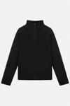 Karyoka dikiş detaylı, siyah polar kumaştan 3/4 fermuarlı vücut ısıtıcısı.