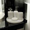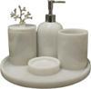 Urestone Beyaz Mermer 5 Parça Banyo Seti-Tepsi-Katı Sabunluk-Sıvı Sabunluk-Diş Fırçalık-Pamukluk