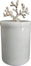 Urestone Home Urestone Beyaz Mermer 9X 10 Mercan Detaylı Pamukluk-Mermer Kapaklı Kutu(Gümüş Aksesuarlı)