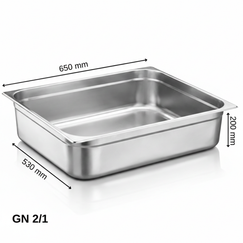 Standart Gastronom Küvet GN 2/1, geniş hacmi ve tam ölçü uyumu sayesinde profesyonel mutfaklarda yüksek miktarda gıdanın tek kapta güvenle hazırlanmasını, saklanmasını ve servis edilmesini sağlar. GN 2/1 ölçüsü; fırınlar, benmariler, soğutma dolapları ve hazırlık tezgâhlarıyla birebir uyumlu çalışarak mutfak içinde maksimum verimlilik sunar.
