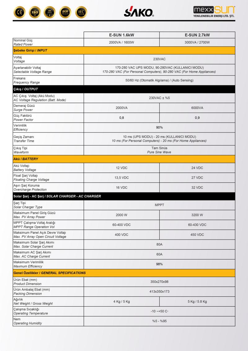 2000 Watt a kadar güneş panelini destekler.