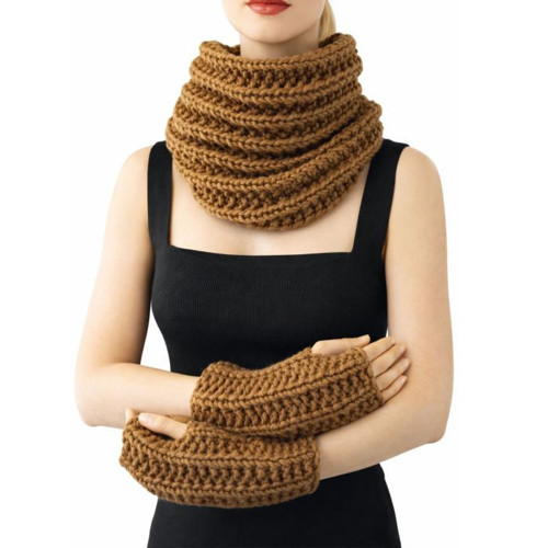 Uretti - Emine 9106 7321 El Örgüsü Kadın Boyunluk ve Parmaksız Eldiven Takımı 2’li Kışlık Akrilik Örgü Set - Kahverengi