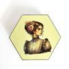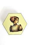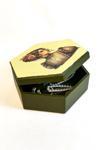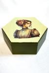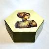 Uretti - Hülya 6683 2552 El Yapımı Nostaljik Retro Kız Baskılı Altıgen Ahşap Dekoratif Saklama / Takı Kutusu – Yeşil