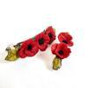 Uretti - Hülya 6683 2942 El Yapımı Gelincik Çiçek Desenli Polimer Kil 2’li Set Klipsli Saç Tokası / 8 cm - 6 cm