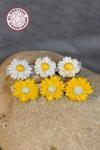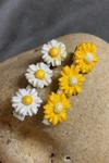Uretti - Hülya 6683 5848 El Yapımı Polimer Kil Beyaz Ve Sarı Papatya Çiçeği Tasarımlı 2'li Yan Saç Tokası / 6,5 Cm
