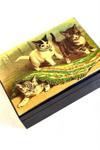 Uretti - Hülya 6683 8214 El Yapımı Nostaljik Retro Kedi Baskılı Dikdörtgen Ahşap Dekoratif Saklama / Takı Kutusu - Mor