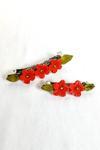 Uretti - Hülya 6683 8715 El Yapımı Taşlı Çiçek Desenli Polimer Kil 2’li Set Klipsli Saç Tokası / 8 cm - 6 cm