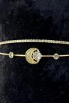 Bu bileklik, şıklığı ve zarafeti bir arada sunan özel bir takı seçeneğidir. Paslanmaz çelikten üretilen bu bileklik, gold ve beyaz renklerin uyumuyla dikkat çeker. Hem günlük kullanımda hem de özel davetlerde rahatlıkla tercih edilebilir.  Ay yıldız su yolu detaylarıyla estetik bir görünüm sağlar ve bilekte gösterişli bir duruş sergiler. Kadınlar için tasarlanmış bu bijuteri bilezik, dayanıklı yapısı sayesinde uzun ömürlü kullanım sunar. Zarif tasarımıyla her kombine kolayca uyum sağlayan bu bileklik stilini tamamlamak isteyenler için ideal bir aksesuardır.