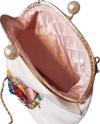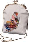 Şıklığın el işçiliğiyle buluştuğu bu özel tasarım çanta, beyaz linen kumaş üzerine özenle işlenmiş pul, payet ve boncuk detaylarıyla göz alıcı bir görünüm sunar. Altın renkli burs kapaması ve zincir askısıyla hem modern hem klasik tarzlara uyum sağlar. Hem şıklığı hem de zarafeti bir arada sunan bu el yapımı omuz çantasıyla stilinizi tamamlayın.