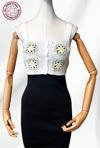 Polo yaka garnili bluz Beyazsiyah - Image 1