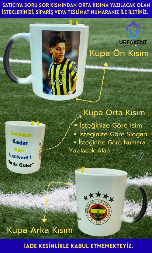Urfakent Kişiye Özel İsimli Fenerbahçe Taraftar Özel İsimli Yazılı Sihirli Kupa Bardak-Sihirli Kupa Bardak
